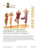 This class takes a fun, creative approach to yoga that encourages kids to explore and discover the mind and body. Traditional yoga poses, partner poses, breath work and relaxation techniques are all tools that provide children, with the opportunity to grow physically, mentally and emotionally. Ages 4-14 years are welcomed.